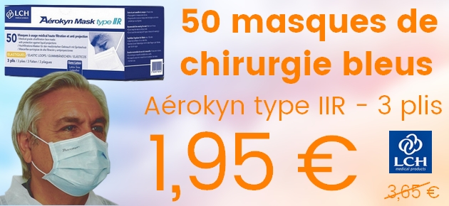 Ajouter au panier Ajouter à ma liste Ajouter à comparer Masque de chirurgie bleu 3... 3,95 € Masque 3 plis type IIR Avec élastique doux et confortable Sans latex Hypoallergénique Longue barrette nasale Antibuée Respiration sans gène Sans fibre de verre EFB ≥ 98% A usage unique CE norme EN 14683 + AC 2019 Couleur : Bleu Boite unitaire de 50 masques Ajouter au panier Ajouter à ma liste Ajouter à comparer Aiguilles BD Microlance 3 -... 4,95 € Aiguilles hypodermiques stériles Utilisées pour des procédures d’injection et/ou pour l’aspiration des fluides médicaux La conception du biseau fait appel aux technologies de pointe (triple biseau) Les parois minces autorisent l’utilisation d’aiguilles plus fines Les aiguilles BD Microlance™ 3 s’adaptent sur un cône Luer ou Luer Lock Embase et protecteur de l’aiguille : Polypropylène (PP) Aiguille : Acier inoxydable (contient 9 à 9,75 % de Nickel et 18 à 19 % de Chrome) Fixation canule/embase : Résine Epoxy Lubrifiant : Huile de silicone Emballage individuel A usage unique Certifié : Sans Latex. Sans Phtalate. Sans DEHP Différentes tailles disponibles* Boite unitaire de 100 aiguilles Ajouter au panier Ajouter à ma liste Ajouter à comparer Gants latex sans poudre -... 4,95 € Gants d'examen en latex sans poudre Gants ambidextres à usage unique non stériles Excellente barrière de protection Excellente élasticité et grosse robustesse Excellente résistance à la perforation Haute sensibilité tactile Excellente résistance aux produits chimiques Ajustement, gantage, confort et précision Bord roulé et manchette standard Couleur : blanc laiteux Différentes tailles disponibles Boite unitaire de 100 gants Ajouter au panier Ajouter à ma liste Ajouter à comparer Gel hydroalcoolique... 13,90 € Solutions désinfectantes sans rinçage Élimine 99.9% des bactéries et des virus Mousse sans alcool hydratante Formulée avec des actifs d'origine végétale Satisfait aux critères de réduction de la norme EN 14476 Sans parfum et hypoallergénique Bactéricide, levuricide et virucide Substance active : Ethanol 70% (v/v) Flacon unitaire de 1 litre avec pompe Ajouter au panier Ajouter à ma liste Ajouter à comparer Pansements extensibles... 29,90 € Pansement adhésif prédécoupé Non tissé Extensible Hypoallergénique Micro-perforé Non stérile Emballage individuel Idéal pour les prises de sang Dimensions : 1,9 x 7,2 cm Sachet de 1000 Couleur chair Ajouter au panier Ajouter à ma liste Ajouter à comparer Masque de chirurgie rose 3... 4,95 € Masque 3 plis type IIR Avec élastique doux et confortable Sans latex Hypoallergénique Longue barrette nasale Antibuée Respiration sans gène Sans fibre de verre EFB ≥ 98% A usage unique CE norme EN 14683 + AC 2019 Couleur : Rose Boite unitaire de 50 masques Ajouter au panier Ajouter à ma liste Ajouter à comparer Alcool modifié 70% Gilbert... 39,90 € Désinfecte la peau et les plaies superficielles Désinfection du petit matériel médical A base d'éthanol à 70% Biocide Fongicide et bactéricide Usage médical Bidon unitaire de 5 litres Ajouter au panier Ajouter à ma liste Ajouter à comparer Vaseline Blanche - Pot de 1 Kg 19,90 € Permet d'adoucir et d'amollir la peau Sert également à faciliter le glissement d'objets Peut s'utiliser lors d'affections dermatologiques (plaies, brulures, crevasses) Limite l'échauffement Traitement d'appoint des lésions d'irritations et de sécheresse cutanée Vaseline en pot de 1 Kg Ajouter au panier Ajouter à ma liste Ajouter à comparer Alcool modifié 70% Gilbert... 9,95 € Désinfecte la peau et les plaies superficielles Désinfection du petit matériel médical A base d'éthanol à 70% Biocide Fongicide et bactéricide Usage médical Flacon unitaire de 1 litre Ajouter au panier Ajouter à ma liste Ajouter à comparer Gants latex noir sans... 8,95 € Gants d'examen en latex Gants sans poudre Non stériles Latex biodégradable et caoutchouc naturel Usage unique Haute qualité Gants ambidextres Couleur : Noir Différentes tailles disponibles Boite de 100 gants Ajouter au panier Ajouter à ma liste Ajouter à comparer Draps d'examen gaufrés -... 45,00 € Draps micro-gaufrés blanc Pure cellulose Prédécoupés en 34x50 cm 2 plis 135 formats Résistants et confortables Rouleaux emballés individuellement sous film plastique Carton de 9 rouleaux