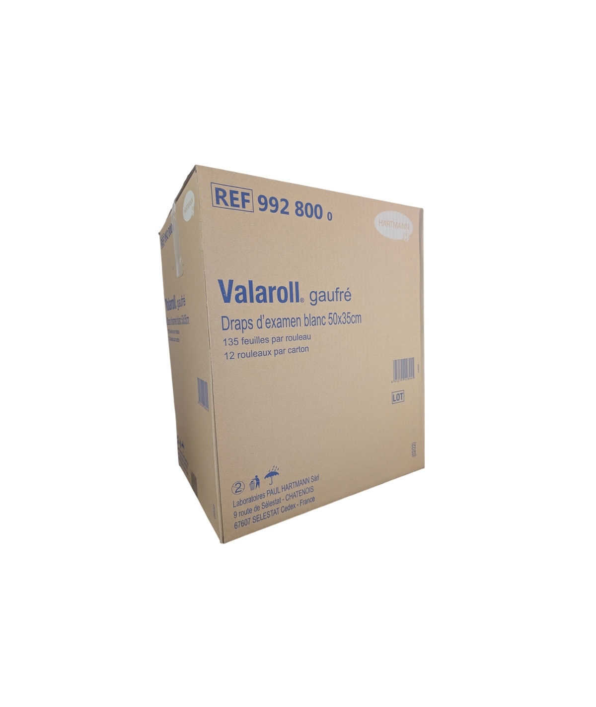 Draps d'examen gaufrés - 135 formats 35 x 50 cm - Valaroll Hartmann - Carton de 12 rouleaux