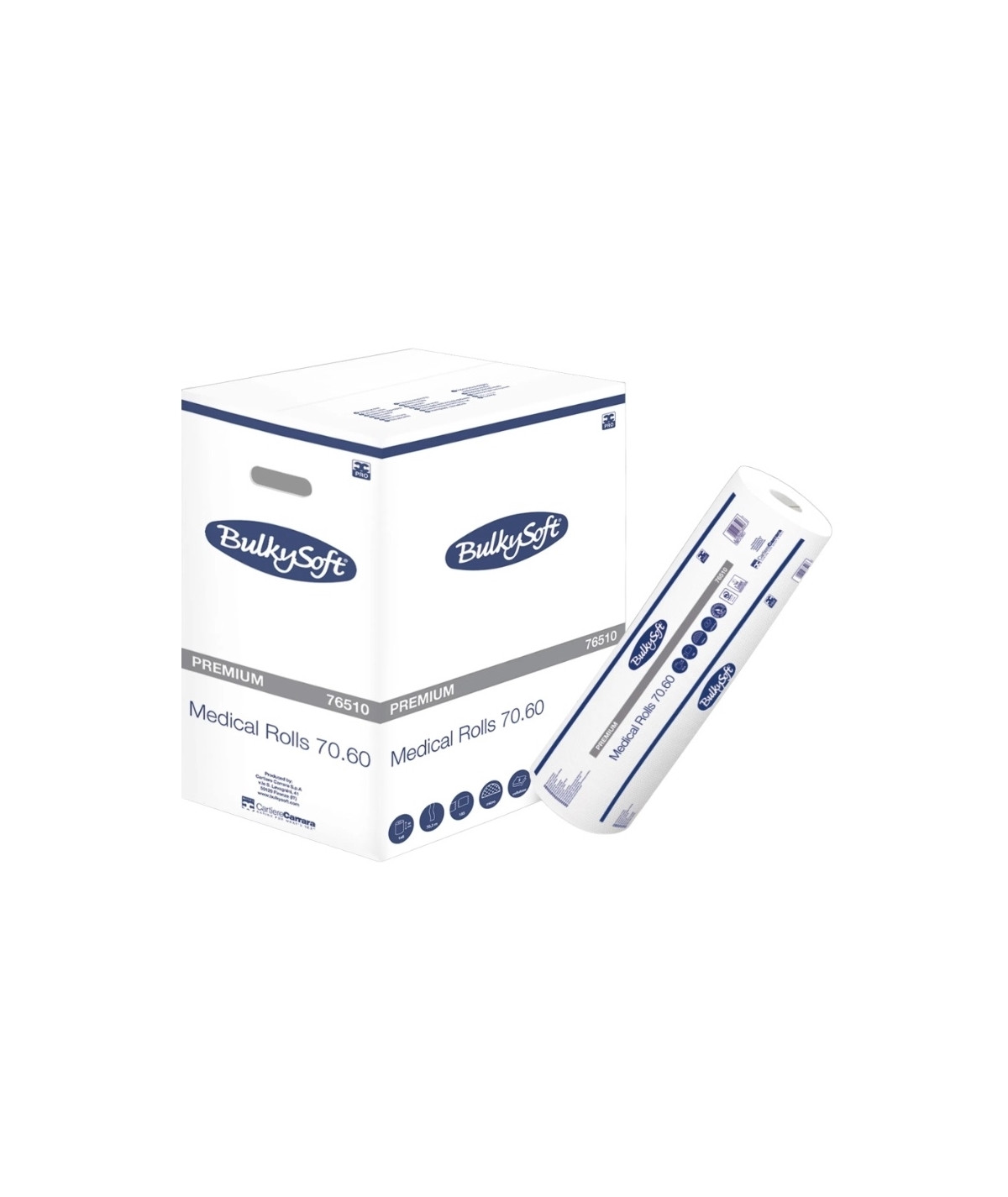 Draps d'examen gaufré Compact - 185 formats 38 x 60 cm - BulkySoft 76510 - Carton de 6 rouleaux