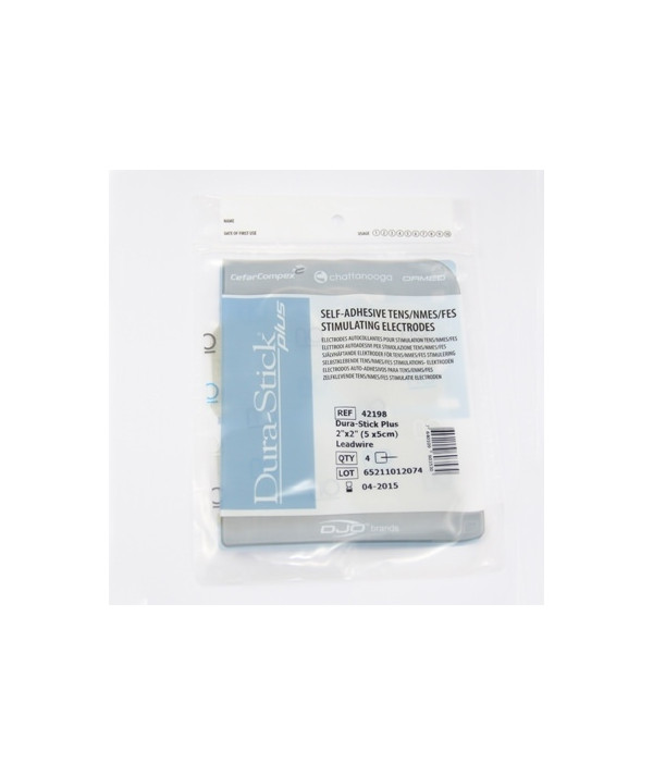 Électrodes carrées à fil 50 x 50 mm - Dura Stick Plus Cefar Compex - Paquet de 4 - Référence 42198