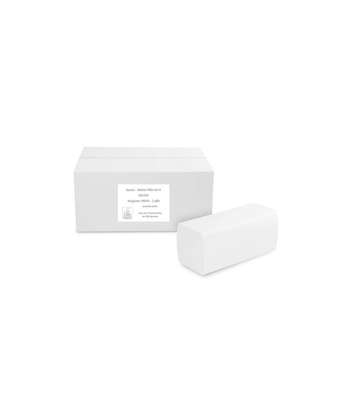 Essuie mains pliés en V - 2 plis gaufrés collés - Carton de 4000 feuilles - Techline 391035