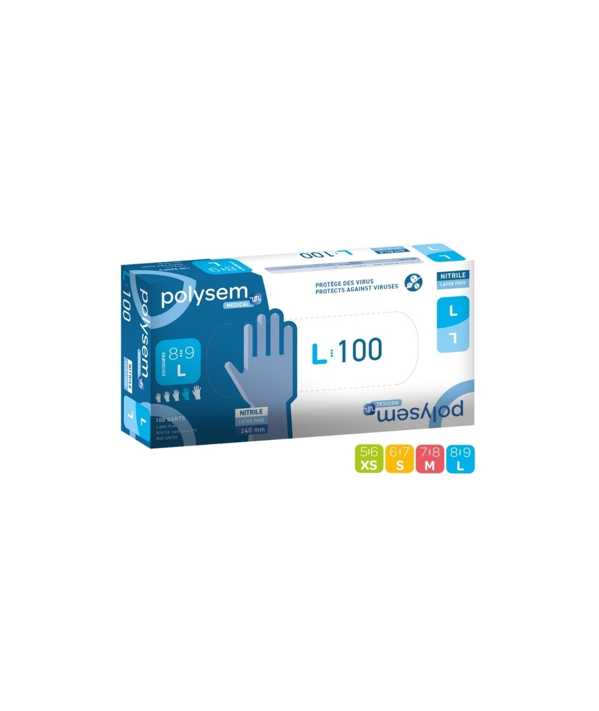 Gants nitrile bleu - Polysem Médical - Sans poudre - Boite de 100