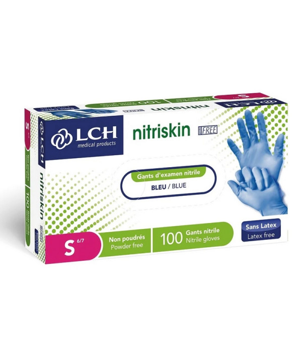 Gants nitrile bleu - Nitriskin LCH - Sans poudre - Boite de 100