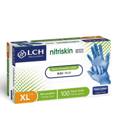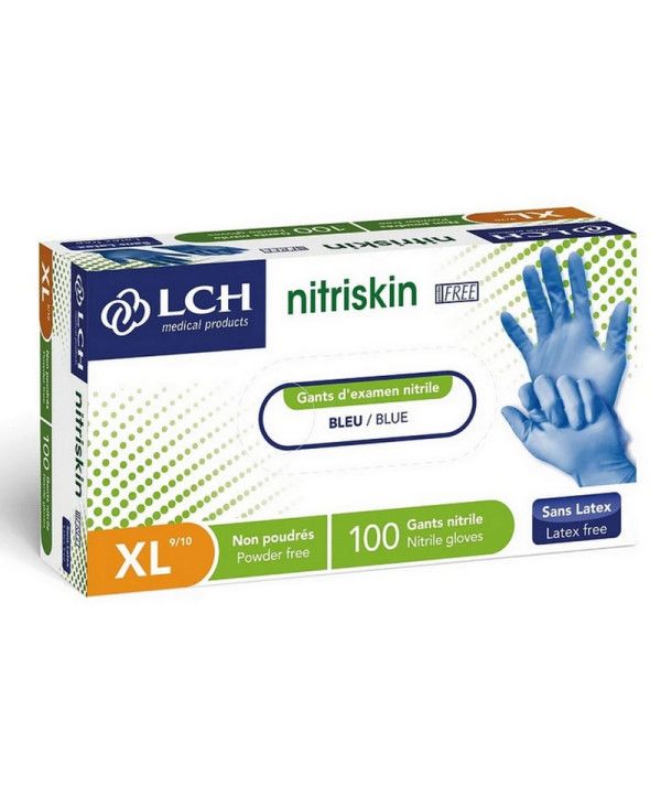 Gants nitrile bleu - Nitriskin LCH - Sans poudre - Boite de 100