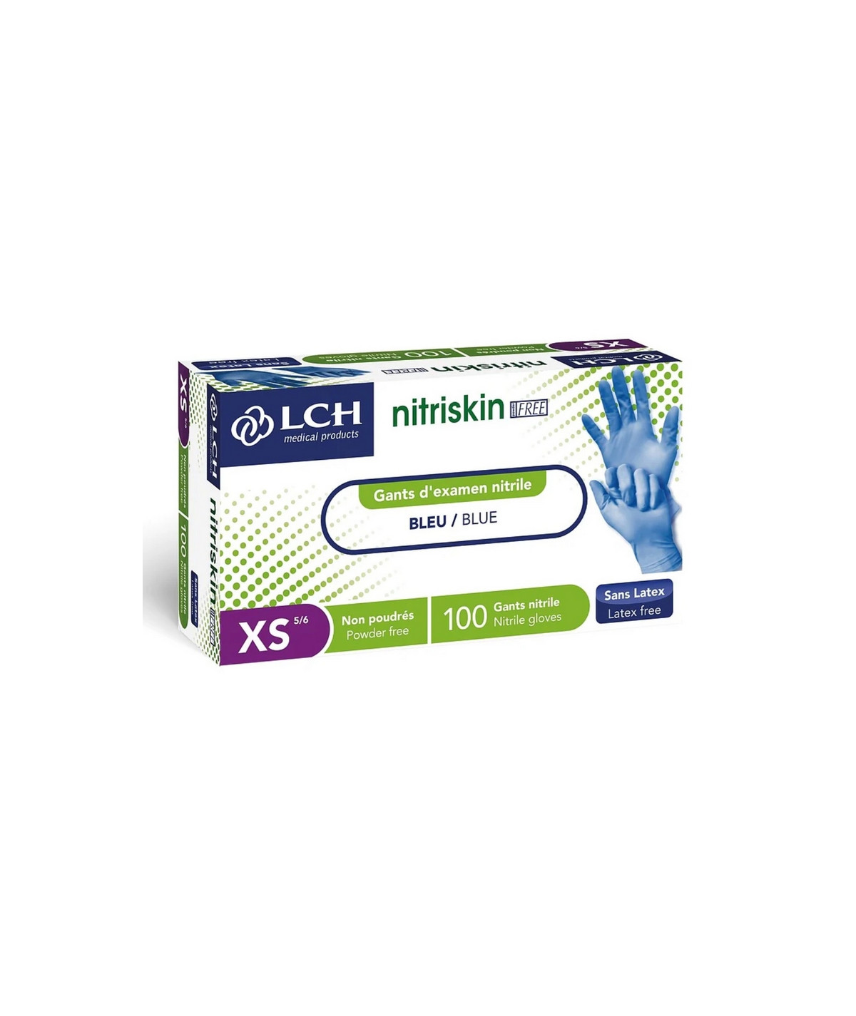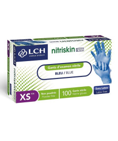 Gants nitrile bleu - Nitriskin LCH - Sans poudre - Boite de 100