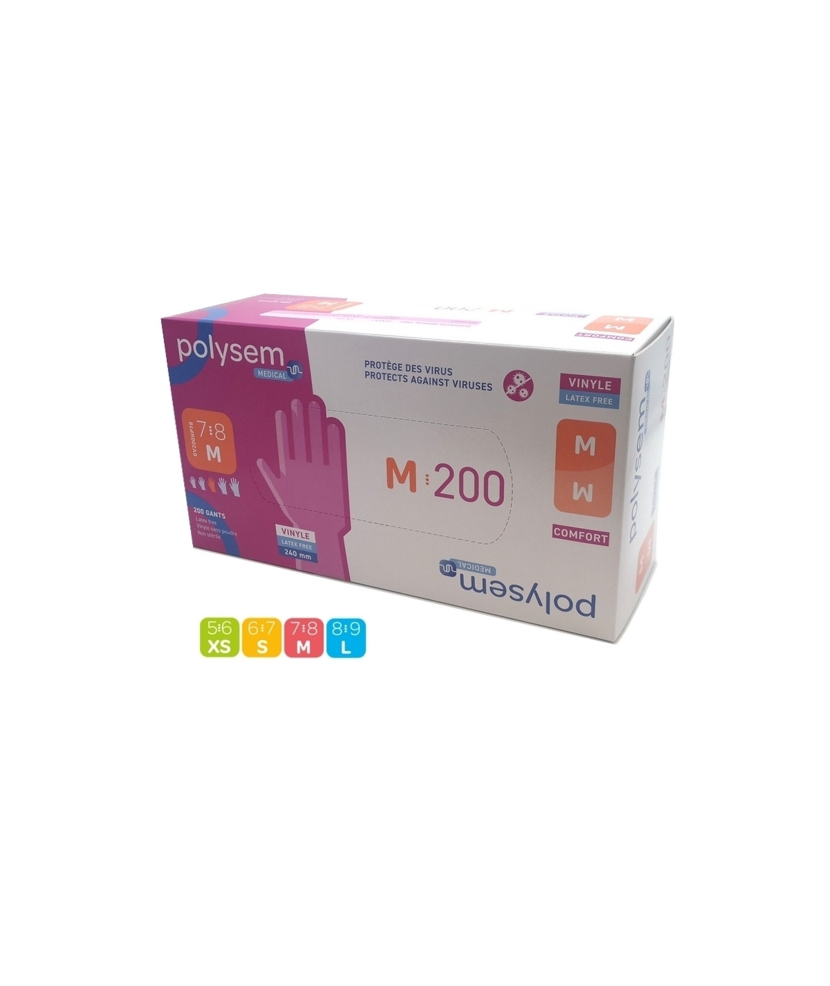 Gants vinyle sans poudre - Polysem Médical - Boite de 200